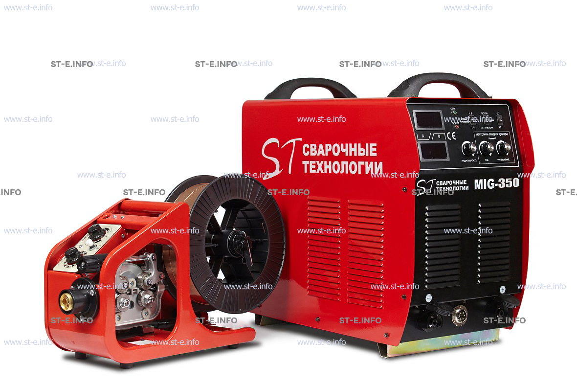 Сварочный полуавтомат MIG-350 бренда ST Сварочные технологии используется для неразрывных соединений разнообразных металлов и сплавов. С широким диапазоном рабочего тока имеется возможность подбора необходимых параметров под определенную толщину и марку стали. Полуавтоматический режим позволяет сваривать даже детали с тонкими стенами - 0,8-1 мм. Сварочная проволока подается одновременно с защитным газом, что защищает зону сварки от разрушающего окислительного воздействия окружающей среды. Образуемый соединительный шов имеет очень высокое качество, отсутствует шлак.